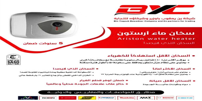 Italian Ariston Water Heater With a five-year warranty from Bin Yaqoub & Partners Trading Company